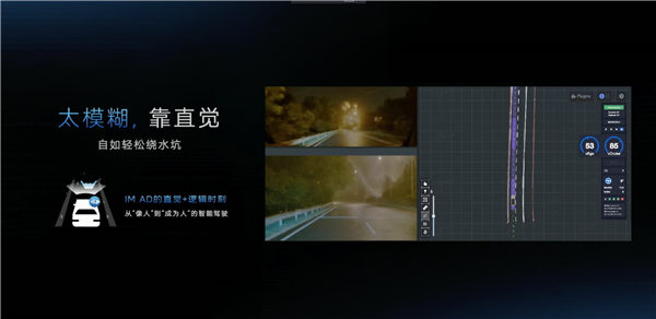 具体场景中,在礼让盲区横穿、中高速避让、横甩避让等突发路况下,IM AD3.0均可以做到果断避让;即使在最复杂的交通环境中,都做到真正老司机般“看路开车”的驾驶方式。